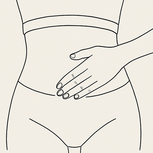 Gently press below your belly button, inward and down toward your lower abdomen, hold for a few seconds, then release and repeat. It’s a simple, soothing nudge that encourages your colon to wake up and get moving — no force, just a gentle reminder to get things flowing.